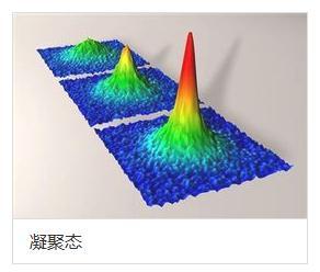 所谓“凝聚态”,指的是由大量粒子组成,并且粒子间有很强相互作用的系统。自然界中存在着各种各样的凝聚态物质。固态和液态是最常见的凝聚态。低温下的超流态,超导态,玻色- 爱因斯坦凝聚态,磁介质中的铁磁态,反铁磁态等,也都是凝聚态。