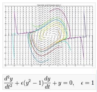 在控制理论中,相图(phase portrait)是动态系统在相平面上的状态  轨迹的几何表达。右图是经典非线性系统 Van der Pol 公式的相图。图中Van der Pol 振荡器的状态轨线收敛于一个极限环上。