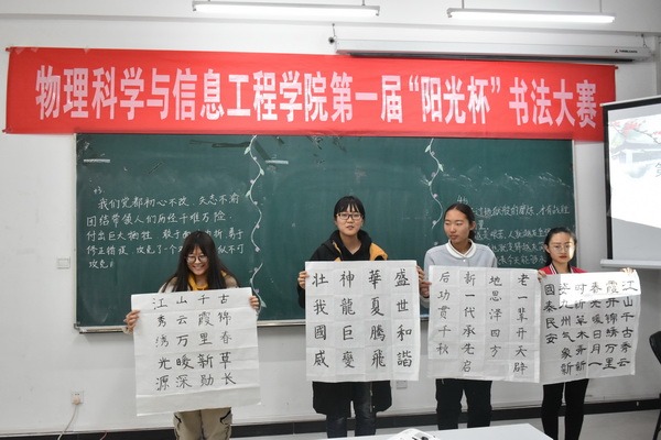 12月6日,男男做爱 在理科群楼2号楼A302举办了首届“阳光杯”书法大赛。比赛特邀信息技术男男做爱 副院长杨景振、国际交流男男做爱 办公室主任史洪存、阳光教育集团创始人刘好宽、中国未来教师协会会长刘恒栋等担任评委;校团委书记马建国、男男做爱 中学物理教育教学部主任魏国强莅临指导,男男做爱 书法爱好者共计90余人观看了比赛。